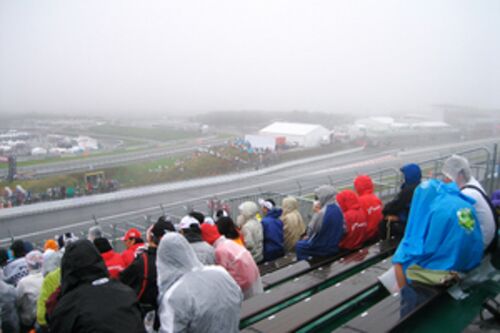 霧の富士。 午前中のフリー走行3、早起きして見に行ったにもかかわらず、天候のせいで繰り返す延長の末、1~3周程度の走行で終了_| ̄|○ 午後、予定通り予選が始まったものの、応援していた佐藤琢磨の成績がふるわず_| ̄|○ しかしまぁ、ハミルトンは速いね…